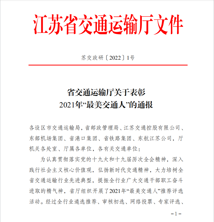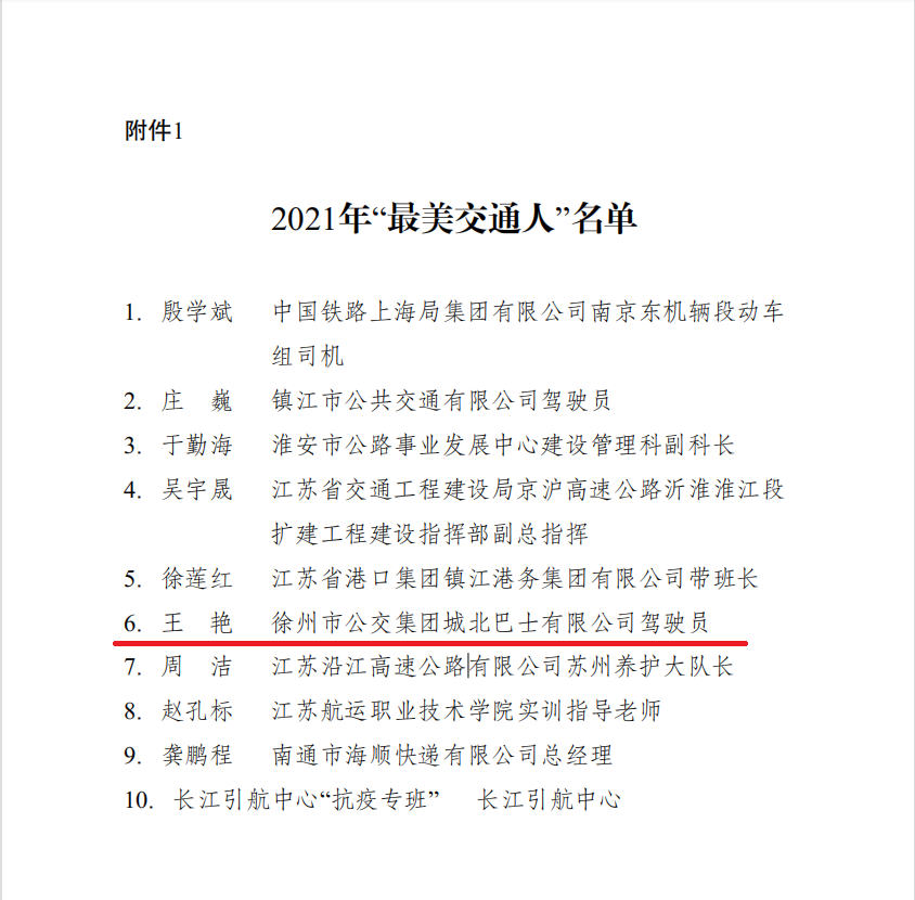 近日,江蘇省交通運(yùn)輸廳下發(fā)《省交通運(yùn)輸廳關(guān)于表彰2021年“最美交通人”的通報(bào)》,徐州公交集團(tuán)公交車(chē)駕駛員王艷榮獲“最美交通人”稱(chēng)號(hào)。